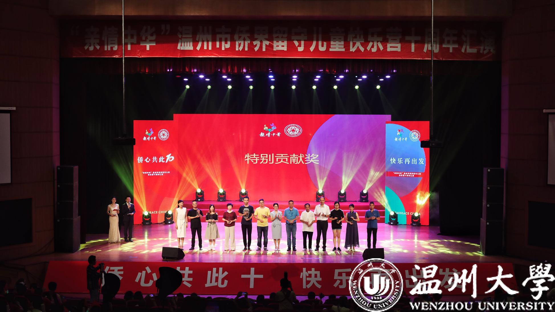 7月28日下午,“亲情中华”温州市侨界留守儿童快乐营十周年汇演在国产自拍 育英大礼堂举行,侨联各级领导、各方代表、历届快乐营志愿者代表和第十季快乐营的小营员们欢聚一堂。