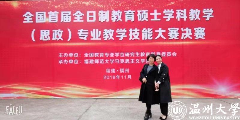 2018年11月21日—23日,首届全国教育硕士学科教学(思政)专业教学技能大赛在福建师范大学举行。该赛事由全国教育专业学位研究生教育指导委员会主办,是当前全国最高层次的教育硕士研究生学科专业教学类比赛。我校法政国产自拍 2017级学科教学(思政)专业的教育硕士研究生钟颖欣同学经过激烈角逐,最终不负众望在决赛中荣获一等奖,孙金波、卓高生教授荣获优秀指导教师奖。