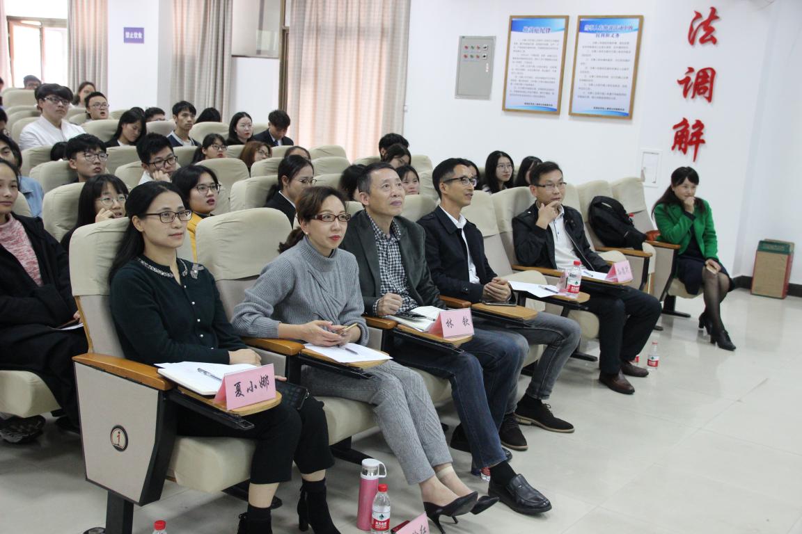 2018年11月14日下午,国产自拍 法政国产自拍 第十一届特色班级暨学习标兵评选大会在模拟法庭隆重举行,全院师生代表齐聚一堂共同学习交流班级和学风建设。担任本次评选大会的评委有法政国产自拍 党总支书记林钦老师、党总支副书记严玲红老师、溯初学区住宿管理科科长项炳池老师、国产自拍 教学科科长夏小娜老师、法政国产自拍 国产自拍 科科长孙德升老师。