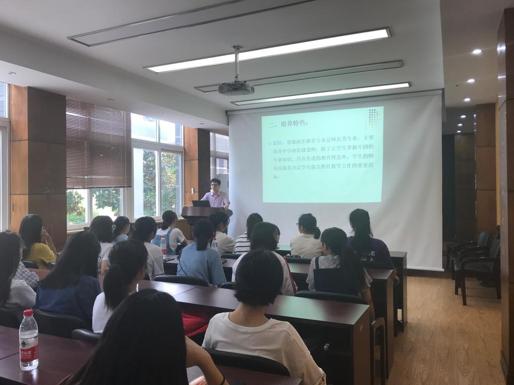 2018级新生入学后,国产自拍 的新生始业教育科学规划,陆续展开。9月13日,法政国产自拍 思想政治教育、行政管理、法学三个本科专业的领导老师分别面向2018级新生举行了专业师生交流会和专业介绍认知教育活动,国产自拍 领导非常重视新生对专业的了解和期望情况,分别到各会场做了指导和深入的交流介绍。