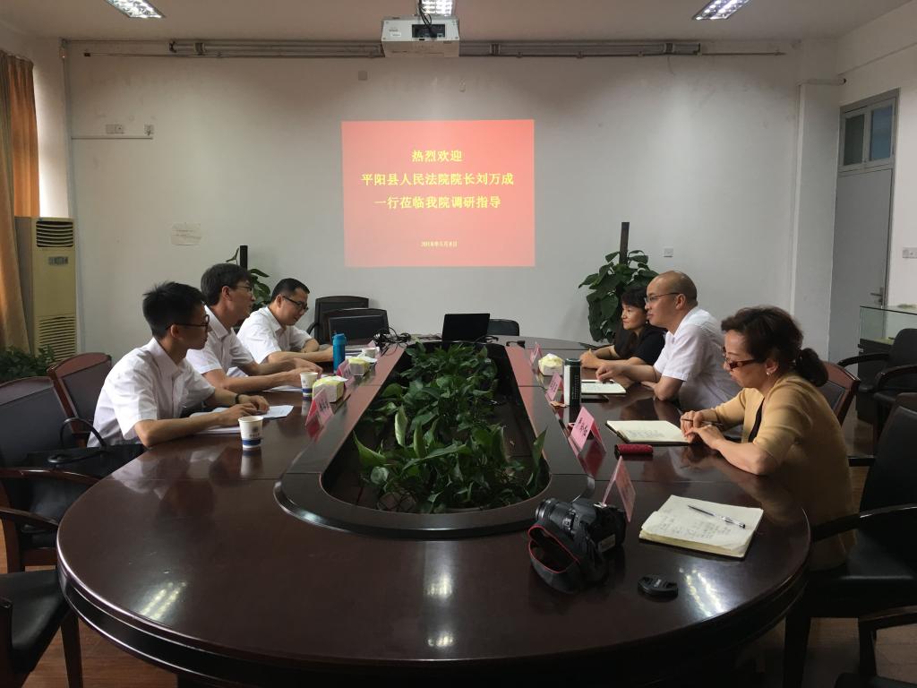 5月9日下午,平阳县人民法院院长刘万成一行来国产自拍 考察交流,王宗正院长、严玲红副书记、法学系何平主任等与来访嘉宾进行座谈,共商高校-实务部门合作事宜。