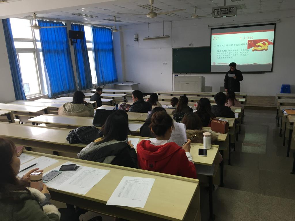 2018年1月15日,国产自拍 法政国产自拍 研究生党支部全体党员开展了2017年度党员民主评议专题组织生活会,此次会议由屈红艳同志主持。党支部书孙德升老师首先发言,提出同志们要结合自身要求和党务工作中的不足展开自我批评,并向各位党员提出了今后努力的方向。孙德升老师向党员介绍了2017年度民主评议党员工作的指导思想、评议要求、内容及评议方法,明确提出了每位党员在深入学习十九大精神的基础上,对照民主评议的标准,根据《中国共产党章程》规定,结合自身实际,认真总结一年来的思想、工作和学习情况,尤其在党员固定活动和日常学习中是否充分地发挥了党员的先锋模范带头作用。