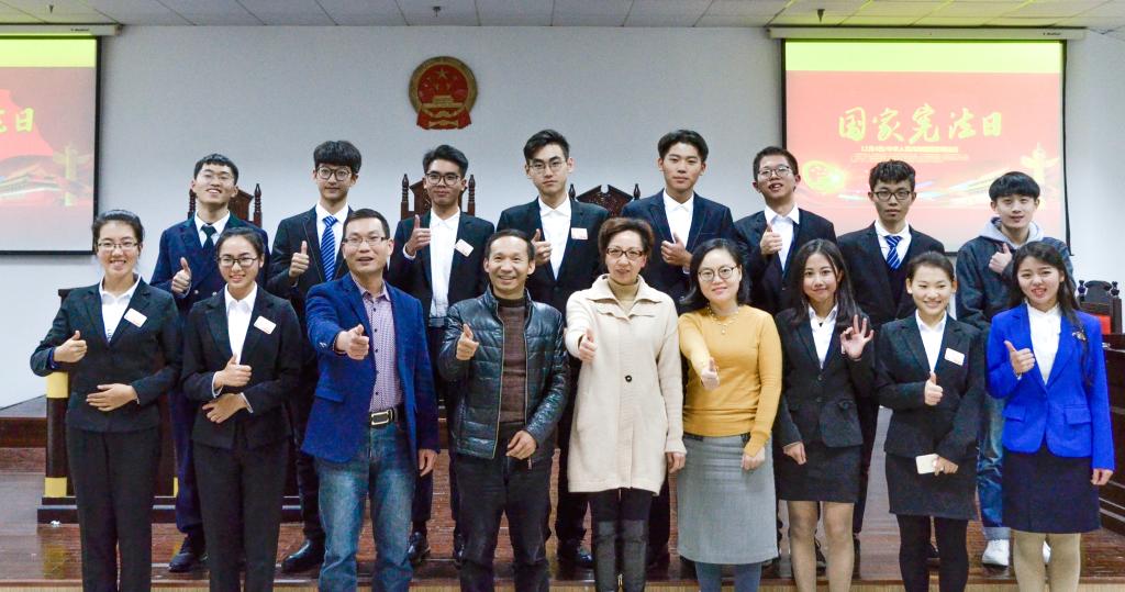 近日,为贯彻落实党和国家关于建设社会主义法治国家的方略和习近平总书记关于全面依法治国的重要论述,结合我校深入实施“爱祖国、爱家乡、爱学校、爱他人、爱自己”主题教育活动的精神,在我国第四个国家宪法日来临之际,校党委宣传部指导主办,法政国产自拍 、校法学协会等联合举办的“讲宪法·享宪法”宪法主题演讲赛决赛在模拟法庭开赛。法政国产自拍 党总支副书记严玲红、瓯江国产自拍 法学系主任曹可亮、法政国产自拍 国产自拍 科科长孙德升、法政国产自拍 法学系邱杓丹老师以及原法政国产自拍 国产自拍 会主席葛汉丞同学担任此次比赛评委,决赛共有来自全校各国产自拍 的12位选手参加。