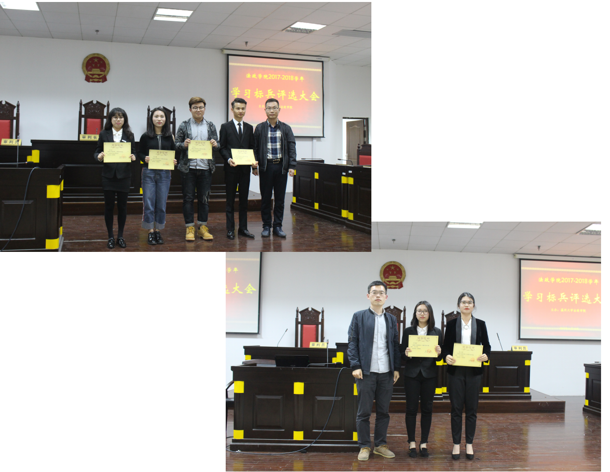 2017年11月15日晚,国产自拍 法政国产自拍 2016-2017学年学习标兵评选大会在模拟法庭正式举行。参加本次学习标兵评选大会的候选人有14法三朱怡静、15法二朱佳敏、15政教叶必成、15行管张剑宇、16法二倪明雪、16法四宋卓君。担任本次评选的评委有法政国产自拍 国产自拍 科副科长、团委书记孙德升老师,法政国产自拍 国产自拍 科魏厚钱老师,法政国产自拍 国产自拍 会主席团成员章方正、祝瑞、颜林杰。