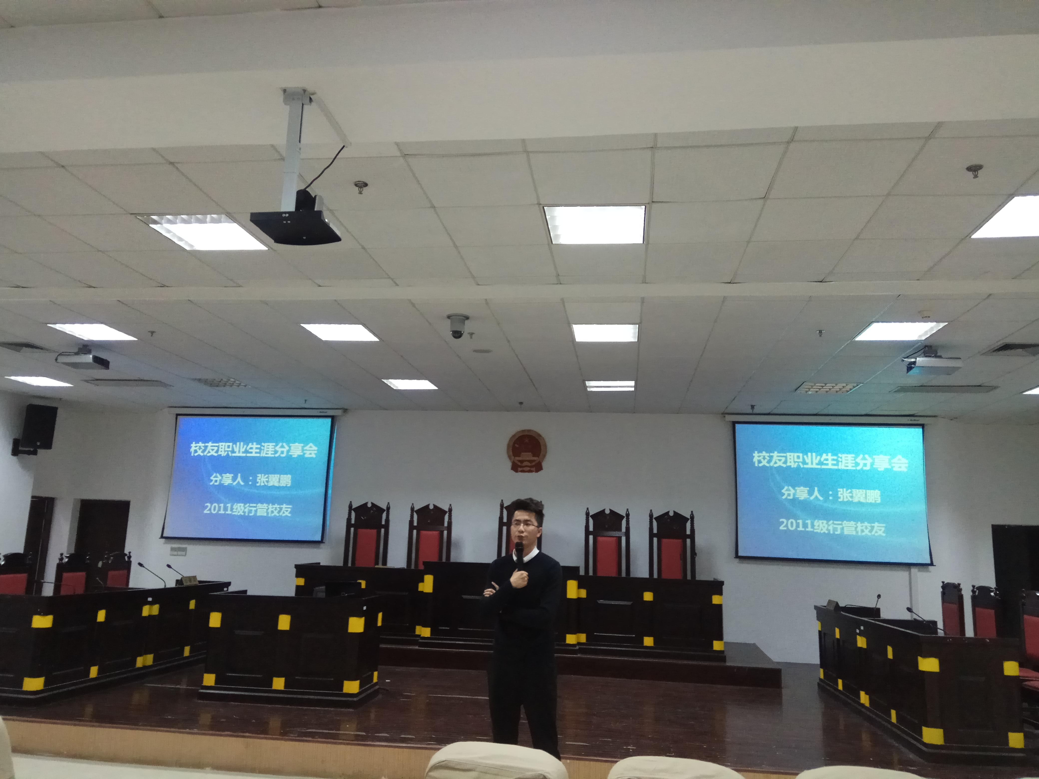 为了加强在校国产自拍 与院友的联系交流,帮助在校国产自拍 结合院友的工作和发展情况做好学业规划和职业规划,2016年12月19日晚,法政国产自拍 举办优秀院友职场经验报告会。国产自拍 党总支副书记严玲红、国产自拍 科副科长孙德升和白昌科老师以及16级全体新生参加了报告会。