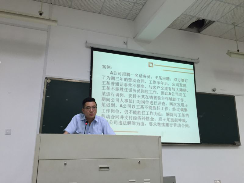 黄百隆法官开篇就对同学们表达了自己对校园生活的怀念和与同学们分享经验的热诚。讲座的节奏非常紧凑,主要分为两个部分——劳动合同解除和终止的概念和法理基础与案例和实践工作经验分享。纸上得来终觉浅,我们在学习劳动法的过程中知道了《劳动法》对劳动者的倾斜保护,但是,现实生活中,有"辞职设计师"等职业极大地扰乱了社会规则。一昧地偏向劳动者会不会造成新的不公平,这是值得我们探讨的问题。当然,黄法官还分享了一个案例告诉我们作为一个法官,在劳动者举证责任难以实施,寻找证据和事实认定困难的时候,法官主动调查以维护弱势者的利益。