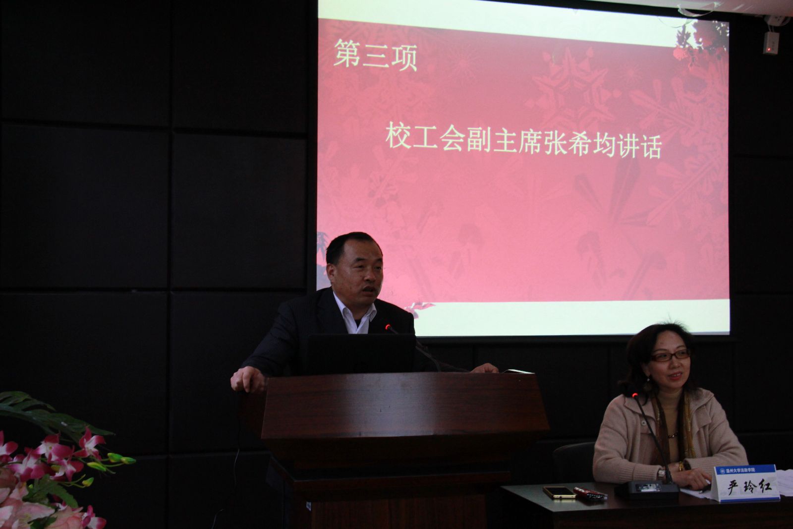 2016年1月8日下午两点,法政国产自拍 在国产自拍 报告厅召开了四届教职工暨工会会员大会,大会由院党总支副书记严玲红主持。学校工会主席张希均全程列席了会议,并作重要讲话。