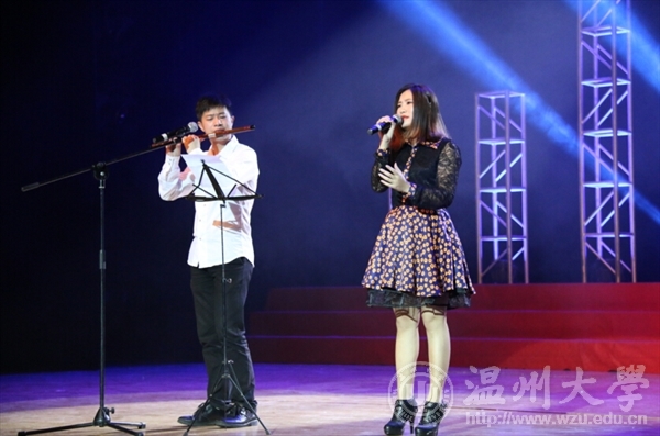 毕业生表演的竹笛伴奏演唱