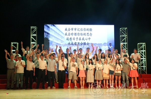 老师走上舞台与毕业班合唱