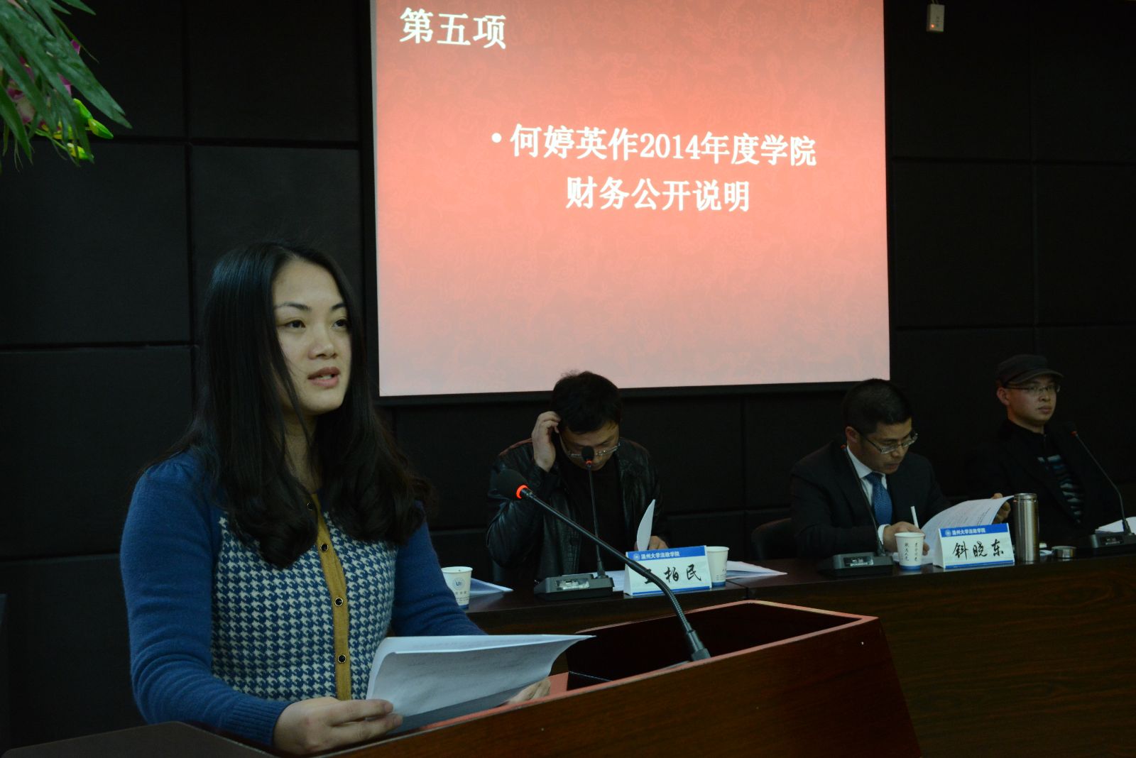 办公室主任何婷英作《2014年度国产自拍 财务公开工作报告》。