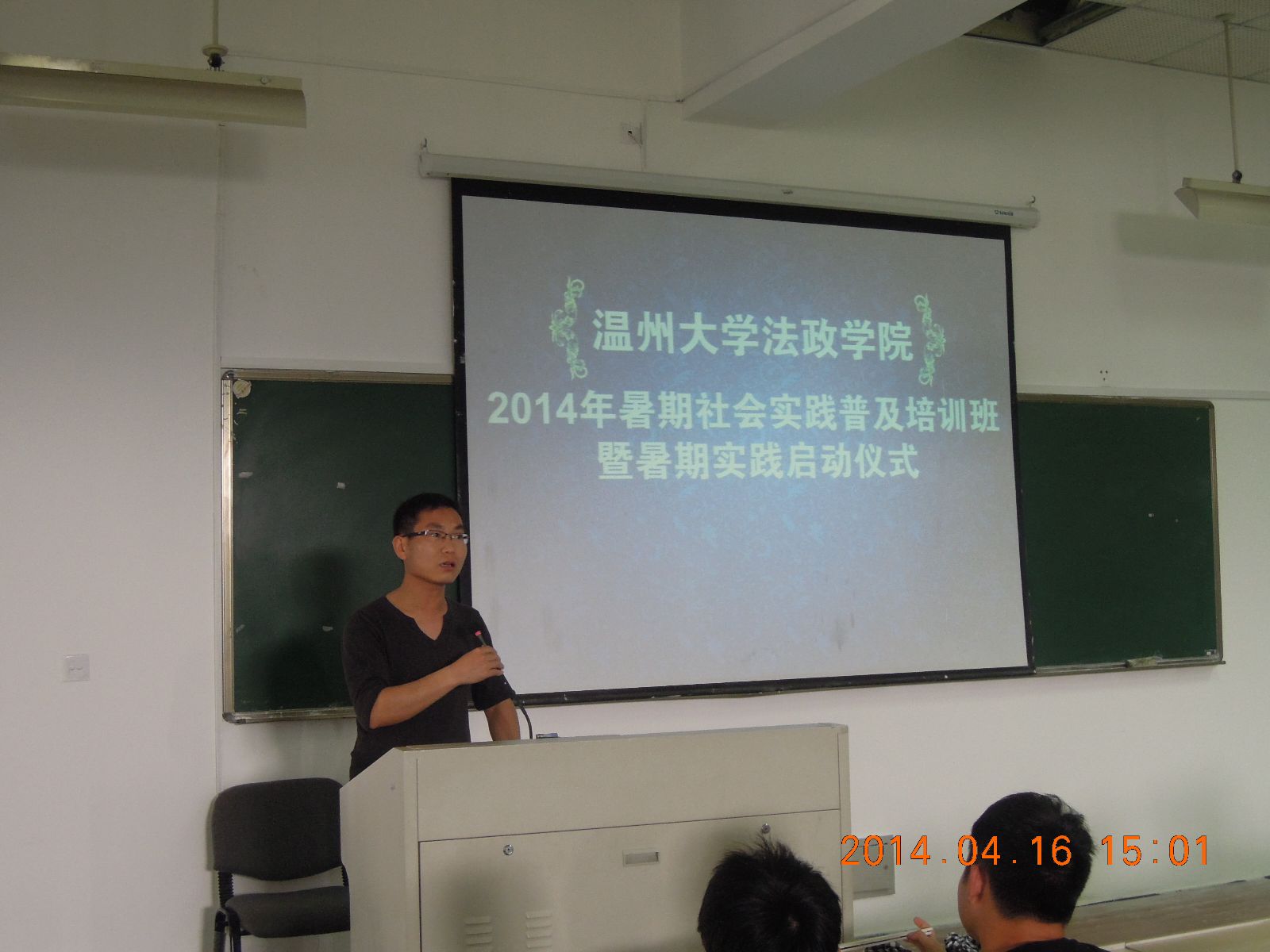 2014年4月16日星期三下午1:30,2014年法政国产自拍 暑期社会实践普及培训班暨暑期社会实践经验交流会在法政楼203教室举行。国产自拍 科孙德升、白昌科老师,2013年优秀社会实践队伍负责人以及13级全体国产自拍 参加会议。