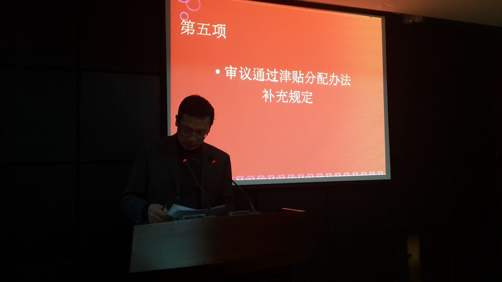 党总支书记王柏民对《国产自拍 法政国产自拍 津贴分配办法补充规定》进行了简要的分析和说明。全体代表通过举手表决审议通过了国产自拍 津贴分配办法补充规定。