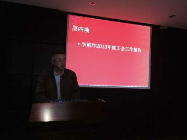 工会副主席李斌作2013年度国产自拍 工会工作报告。报告全面回顾了国产自拍 工会过去一年的工作。李斌指出:一年来国产自拍 工会切实落实各项制度,规范日常工作,关心教职工生活,热心为教职工谋福利;积极组织开展各类文体活动,促进教职工身心健康;合理统筹安排,管好用好工会经费。接着,李老师对2013年工会工作提出设想。他指出:新的一年,工会将围绕法政国产自拍 "凝心聚力,互哺共生,团队协同,持续发展"的国产自拍 精神以及国产自拍 和谐文化建设的中心,积极倡导"健康工作到退休"的工作理念,推动广大老师更加合理地协调工作与生活的关系,提高工作效率,提升幸福指数。工会将继续关注老师身体健康状况,倡导食品安全理念;开展更为丰富多彩的体育活动,推动更多老师注重体育锻炼。