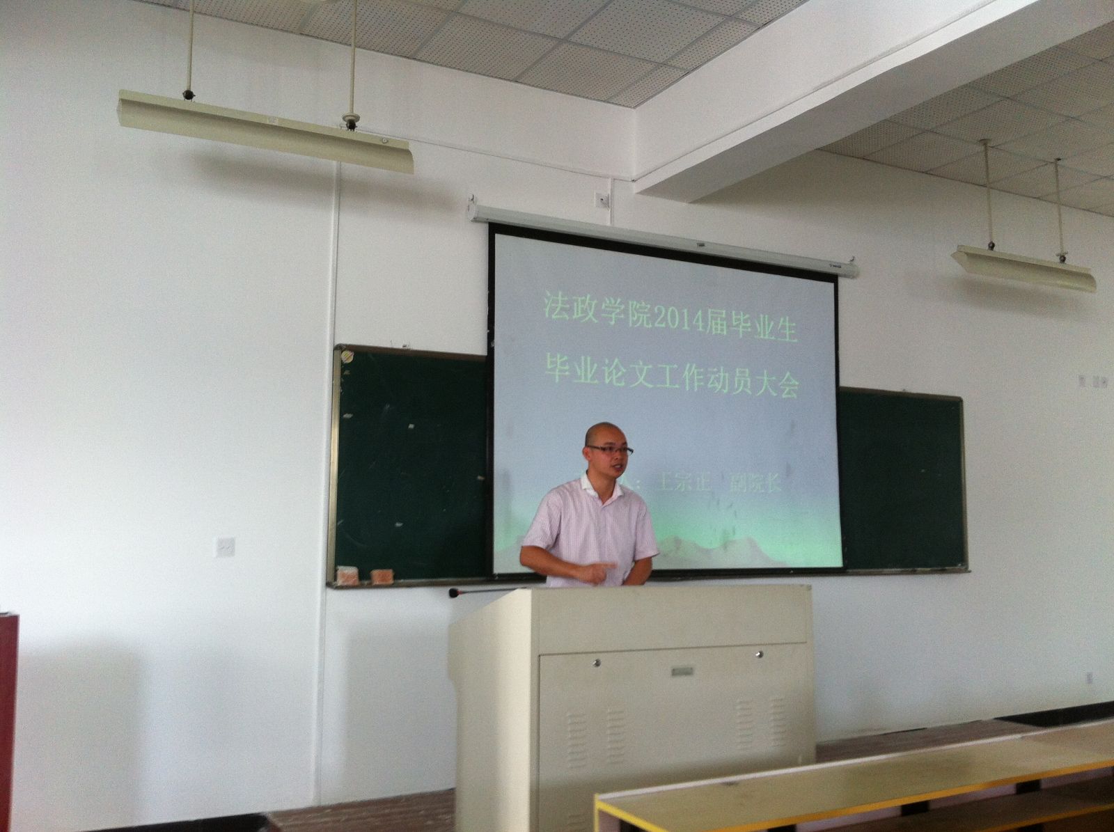 2013年9月17日下午,国产自拍 在2号楼203教室举行了2014届毕业论文动员大会。会议由王宗正副院长主持,2010级同学参加了本次动员大会。