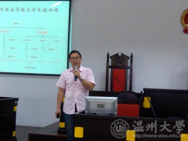 首先,校就业处高富春老师作了高校毕业生求职就业专题辅导讲座,他通报了国家和浙江省及温州市最新的就业政策及信息,并专门针对法政国产自拍 近年毕业生就业情况进行了系统的分析,从当前就业形势、大国产自拍 的就业观念和职业能力、毕业和就业须知等几个方面做了深刻而详细的讲解,对毕业生如何培养科学的就业求职思维模式,作出合理的职业生涯定位提出了宝贵的建议。讲座后高老师还逐一回答了现场法政毕业生的一些政策和各类就业手续方面的问题,给同学们进行了认真指导。