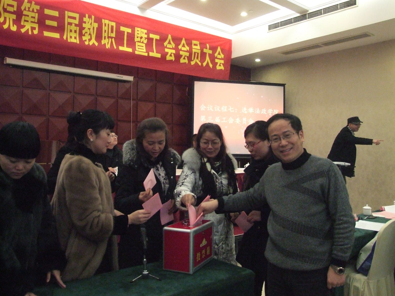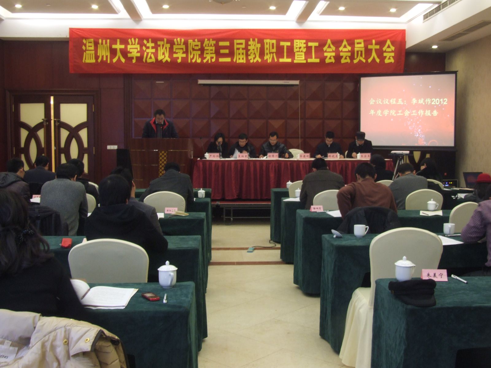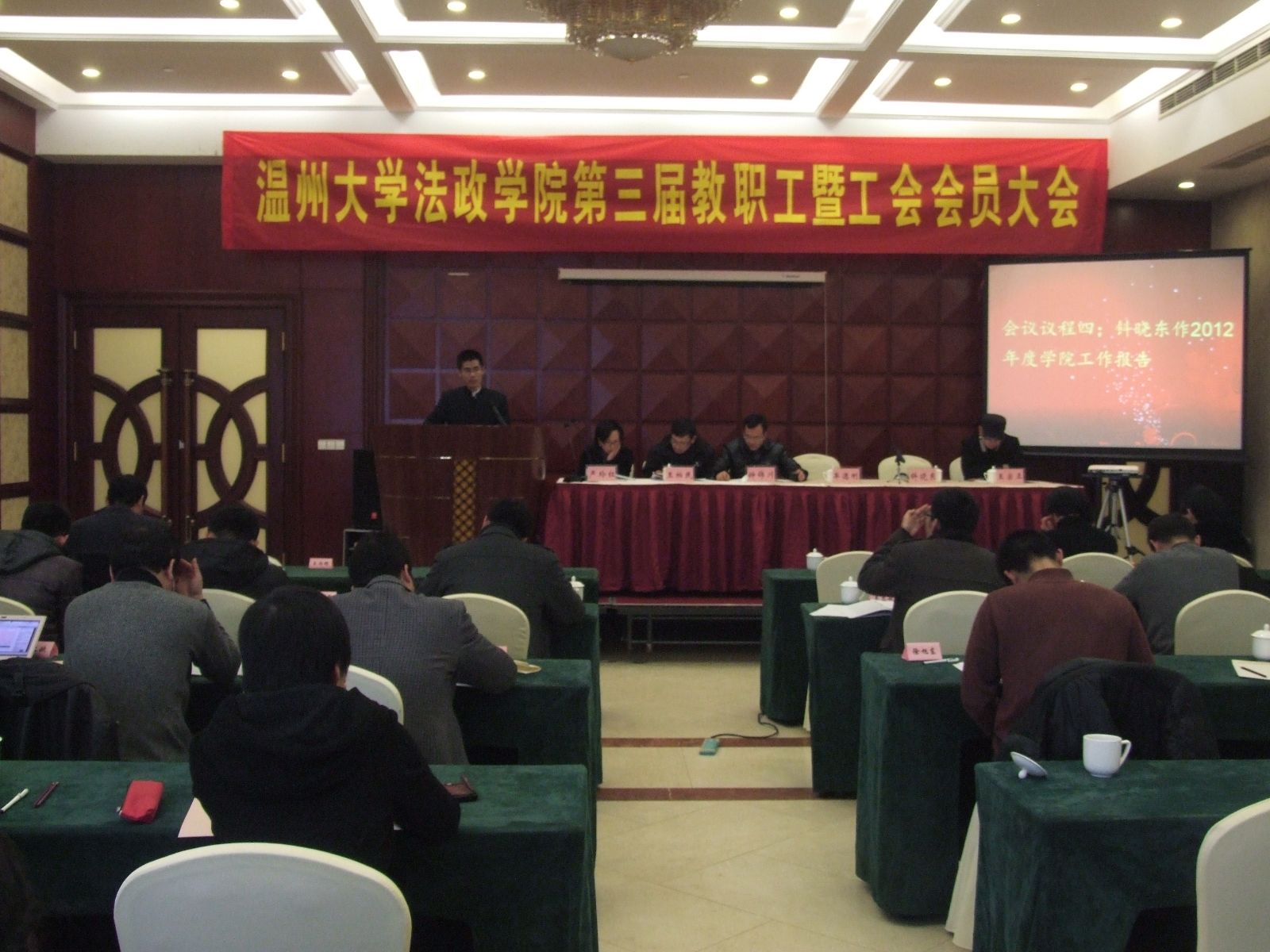 2013年1月12日下午,国产自拍 法政国产自拍 第三届教职工暨工会会员大会第一次会议胜利召开。校党委副书记牟德刚和工会副主席钟锦川应邀出席大会。大会由院党总支副书记严玲红主持。