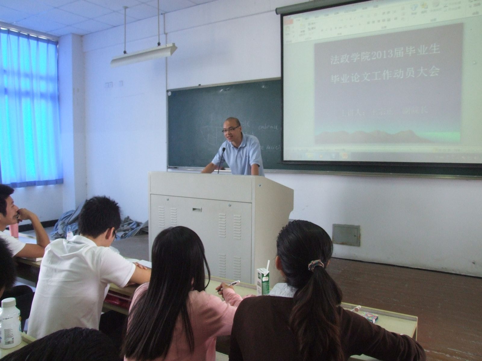 为了让毕业生进一步明确毕业论文要求,确保毕业论文工作顺利进行,2012年10月10日上午,法政国产自拍 在2号楼20教室召开了2013届毕业生的毕业论文动员大会。法政国产自拍 副院长王宗正教授、教学科夏小娜老师以及国产自拍 近200名毕业生参加了本次动员大会,会议由副院长王宗正教授主讲。
