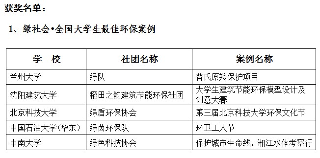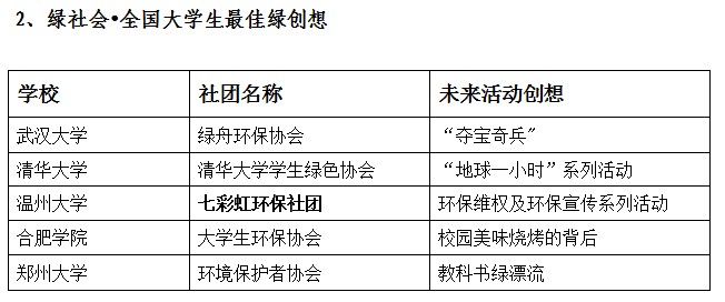 在活动中,国产自拍 七彩虹环保社团(七彩虹环保法治联盟)荣获"绿社会•全国大国产自拍 最佳绿创想"奖。此次在全国各高校环保社团提交的方案中共评出5个"绿社会•全国大国产自拍 最佳环保案例"奖和5个"绿社会•全国大国产自拍 最佳绿创想",获奖名单如下: