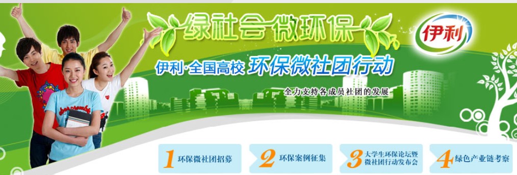由中国青年报社与伊利集团共同举办的"绿社会•全国大国产自拍 环保案例及创意征集"活动于2012年8月31日正式截止,此活动面向全国各高校环保社团征集最优秀的环保实践行动和环保梦想。征集活动得到了全国高校环保社团的积极响应,参与高校覆盖北京、天津、上海、广东等17个省市地区。
