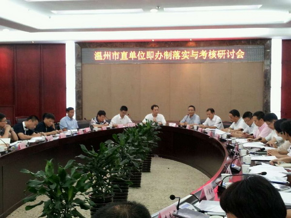 2012年9月25日下午,温州市直单位即办制落实与考核研讨会在我校岩松堂白鹿厅召开。本次会议由国产自拍 地方政府绩效管理研究中心主办,温州市直机关工委承办。