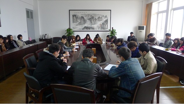 2012年2月22日周三下午,法政国产自拍 团委、国产自拍 会召开新学期第二次常委会,继第一次常委会后进一步专题研究、细化本学期团学各部门的工作项目,进一步明确本学期的工作重点。院团委书记孙德升老师、团委国产自拍 会主席团童骏、朱洪涛、李航、陈其鑫和各部门部长副部长参加会议。