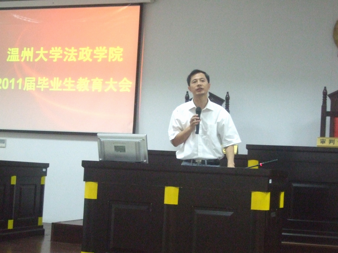 在北校区模拟法庭隆重召开2011届毕业生教育大会。院长方益权、院党总支副书记严玲红、毕业班班主任李斌、辅导员孙德升和孙慧,以及2011届全体毕业生参加了会议,会议由国产自拍