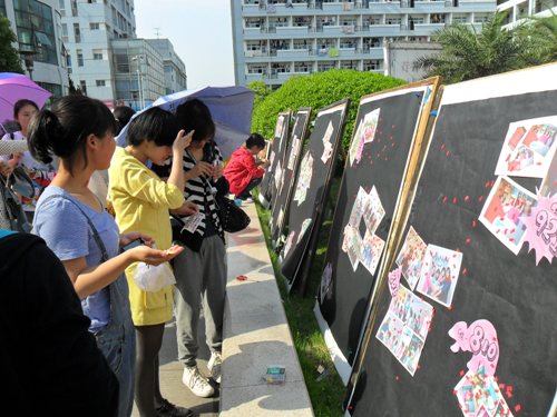 寝室是我家,舍友是我的兄弟和姐妹!你瞧,这一张张可爱的家庭大合照,温馨的、可爱的、搞怪的……照片里每个人都笑的那么开心灿烂,这温馨的寝室小家的美好氛围从照片中洋溢开来,感动着观看展览的每一个人。大学是人生中最宝贵的时光,舍友是大学期间共同学习生活四年"最亲密的家人",舍友之情最是让人难忘和值得珍忆。明媚的春天,美丽的校园,让我们用照片记录下这生活中最最珍贵而美好的回忆,记录和定格我们的笑容、友情和一起走过的青春,温暖和滋润我们一生的心田。展览现场吸引了众多来往师生驻足欣赏,大家纷纷为心目中最棒的"和谐温馨寝室"现场投票。