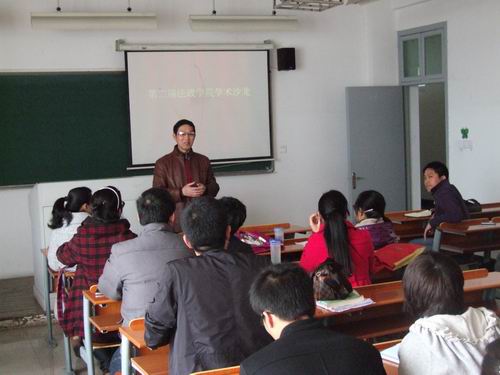 与思想交流平台,他希望同学们能够积极参与、认真准备、全神投入,在参与和互动中碰撞出思想火花。随后,姚周辉副院长宣布2009级硕士研究生专题系列报告会首期活动正式开始。首期活动共有四个专题,分别是柳俊丰的"农民中准市民群体的市民化问题探析"、张浩的"坚持调解优先原则构建多元化农村矛盾化解机制"、马池霞的"高中思想政治课生活化教学研究"和康志亮的"城市基层社会管理问题探析"。报告会上每位报告人先陈述自己的主要观点,然后由其他同学就其中的相关问题与报告人展开交流和探讨;最后王勇博士就报告人的报告选题、报告内容、研究思路等做了精彩的点评,既指出了每位报告人的优势和劣势,也对研究生的国产自拍