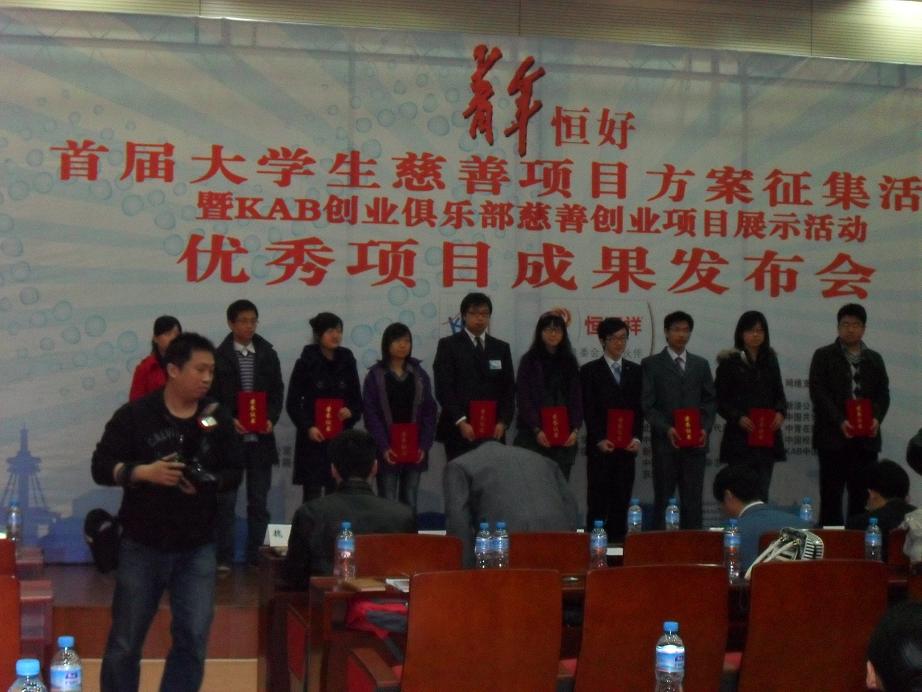 2010年4月19日,全国首届大国产自拍 慈善创业项目方案设计大赛成果发布会在中央财经大学举行。此次活动是在共青团中央、全国青联、国际劳工组织的指导下,由KAB全国推广办公室、恒源祥(集团)有限公司等单位共同发起的,旨在推动各高校开展KAB创业教育课外实践活动,培养大国产自拍 具备包含社会责任在内的优秀的创业观念和技能,将社会责任的基因植入中国未来的创业者群体中。