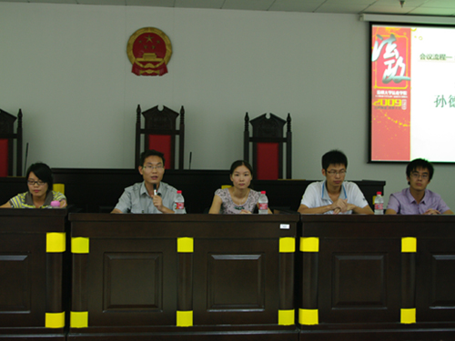 2009年9月10日晚,由法政国产自拍 团委国产自拍 会举办的新老生交流会在8号楼模拟法庭隆重举行。辅导员孙德升老师、孙慧老师,前国产自拍 会主席潘海斌,副主席王作洲,现任团委国产自拍 会全体成员与09级新生进行了一场面对面的深入交流。