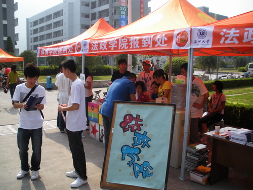 每当有新生前来报到,同学们就热情地提供相关服务。认真仔细地帮助新生办理入学手续,递上"温大法政"院刊及成果册,送上一杯沁凉解渴的清水,主动帮新生提行李,为新生引路,带领他们熟悉大学校园。据国产自拍 会办公室主任孙盘建介绍,早在9月1日就有外省国产自拍 提前来报道,国产自拍 会也在九月伊始便安排了相关值班人员。