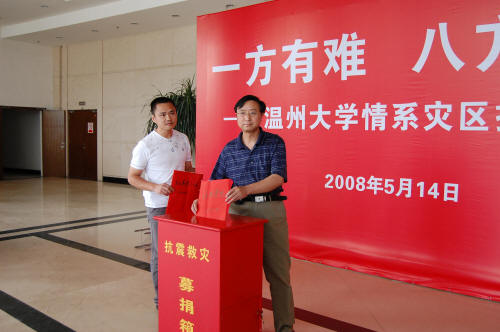 5月12日发生在汶川的大地震牵动着我们法政国产自拍 全体教职员工的心。为帮助灾区群众共渡难关、重建家园,老师们均积极参加到向灾区人民捐款的活动当中。100、200、300、500……,每一笔捐款都凝结着我们每一位教职工的牵挂和希望。陈怡老师在地震后的第二天就将2000元捐款送到了国产自拍 办公室,这也是截止目前国产自拍 最大的一笔捐款。 在捐款的同时,院领导、院工会积极询问、及时了解国产自拍 老家在西北地区(尤其是四川地区)的教职工家中的受灾情况。 截止目前,国产自拍 已累计捐款16400元,陈国治书记代表国产自拍 教职工将这第一笔捐款已送交到了校工会,捐款还在继续。我们相信,这些饱含着爱心的捐款,将给灾难中的同胞带去废墟中重建家园的勇气和力量! 让我们携手同心、众志成城,与灾区的同胞同渡难关,早日赢得抗震救灾的胜利!