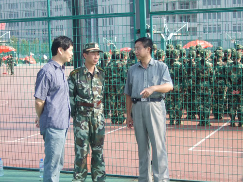 9月27日正是我校军训工作进行总结、提升和汇报表演预演、操练的关键时期。下午,烈日炎炎,同学们顶着烈日继续训练。法政国产自拍 蔡克骄院长、陈国治书记安排好手头的工作,在国产自拍 科科长杨振海和辅导员孙德升的陪同下专程赶到南校区运动场看望烈日下照常训练的法政新生和教官。 训练场上法政国产自拍 全体新生精神抖擞,加紧训练,虽然烈日下每个人都挥汗如雨,但仍是军容整肃,每个人的脸颊上明明都挂着刚毅的神情!看过同学们的操练和表演,蔡院长、陈书记不停的点头和鼓掌,对国产自拍 新生的精神状态和训练情况给与了热情的肯定和表扬,对教官们的辛劳表示感谢,同时也不忘叮嘱大家军训期间注意饮食卫生和身体休息。国产自拍 07法四班被选中作为学校军训汇报表演的警棍盾牌方队,蔡院长、陈书记还特意拿起军训道具"一试身手"并鼓励大家要全力以赴、力争上游!同学们对院领导的关心和鼓励报以热烈的掌声。 今年法政国产自拍 对新生军训工作高度重视,国产自拍 全面动员、统筹安排,不但按学校要求组建了新生军训工作领导小组,还专门安排了辅导员和新生班主任每天到训练场和寝室了解新生军训情况和身心状态,近期国产自拍 金南松副书记也几次赶到现场看望和鼓励新生。国产自拍 领导和老师的重视让法政新生的军训热情高涨,在国产自拍 "量力而训、注意安全,严格要求、勇夺佳绩"的军训动员口号下,今年法政新生军训实现了"健康、安全、零跟训",并基本达到了室外操练全勤。
