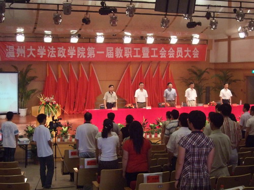 | 2007年6月17日,法政国产自拍 隆重召开第一届教职工暨工会会员大会。上午9点,在庄严雄壮的《国歌》声中,法政国产自拍 第一届教职工暨工会会员大会在北校区音乐厅拉开了帷幕。校党委副书记周湘浙、校纪委书记、工会主席吕海鹏应邀出席,校工会副主席余增荣及各有关部门领导也应邀参加了大会。开幕式由国产自拍 党总支书记陈国治主持,全院教职工、工会会员及列席代表共计74人参加了开幕式。 校党委副书记周湘浙同志、校纪委书记、工会主席吕海鹏同志分别在会上讲话。他们代表学校对法政国产自拍 顺利召开第一届教职工暨工会会员大会表示祝贺,对国产自拍 近年来各项工作所取得的成绩给予了充分的肯定。同时指出,当前学校正全力准备迎接2008年教育部对我校的本科教学工作水平评估,为此,希望国产自拍 的教职工以此次会议的召开为契机,统一思想,明确任务和目标,扎实地做好各项工作。 开幕式结束后,根据大会安排进行其他议程。大会听取并审议了院长蔡克骄同志所作的《院长工作报告》,副院长王柏民同志所作的关于《法政国产自拍 (思想政治理论教学部)2007—2010年发展规划(草案)》的说明、副院长朱选华同志所作的关于《法政国产自拍 津贴分配暂行办法(草案)》的说明及国产自拍 工会小组组长杨筱玲同志所作的《法政国产自拍 工会工作报告》,表决通过了《国产自拍 工作报告》、《国产自拍 2007-2010年发展规划》、《国产自拍 分配暂行办法》、《国产自拍 工会工作报告》。大会通过了国产自拍 第一届工会委员会选举办法,并选举产生了法政国产自拍 工会第一届委员会。 院长蔡克骄同志所作的题为《转变观念 开拓进取 全面开创国产自拍 工作新局面》的工作报告,从国产自拍 办学层次、办学水平、学科建设、国产自拍 工作、师资队伍建设、党建思想政治工作、国产自拍 工作、工会工作等方面全方位总结了国产自拍 建立两年多来工作,客观地总结了两年多来所取得的经验,明确了面临的形势和存在的薄弱环节,进一步梳理和明确了国产自拍 今后一段时期的发展目标和工作任务。在发展上,国产自拍 将根据学校的十一五规划要求,探索一条具有自身特色、符合学校要求和国产自拍 实际的发展途径。院长所做的工作报告获得大会一致肯定和通过。 大会为期一天,经过全体与会同志的共同努力胜利闭幕。院党总支陈国治书记在会上致闭幕词。 本届教代会是一次求真务实,卓有成效的大会, 始终体现了民主、求真、务实的氛围,代表们从国产自拍 实际出发,提出了许多有利于实现国产自拍 跨越式发展的宝贵意见和合理建议,这些意见和建议对于改进国产自拍 工作、沟通思想、统一认识、增强凝聚力有着十分重要的意义。