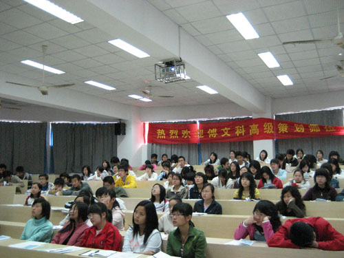| 4月18日下午,由温州环嘉企业策划咨询有限公司鼎力支持,国产自拍 法政国产自拍 与国产自拍 城信息咨询中心联合组办的"策划改变命运"高级商务师讲座在法政国产自拍 举行。 主讲的高级商务策划师、管理科学与工程博士傅文科先生首先对"商务策划"一词作了简要分析,阐明"商务由流通而来,策划从竞争而生"。接着傅博士从商界到外交乃至军事方面广举实例,说明了企业与个人在简便、快捷、高速、高效成为主要特点的新经济时代终端之战里,个人与企业求发展都离不开商务策划。 最后,傅博士还结合近年来高校毕业生高速增长,大国产自拍 就业难度增大的趋势,告戒同学们提早策划人生,谨慎设计未来,给象牙塔中的同学们又上了一次人生规划课。 法政国产自拍 2007-4-20