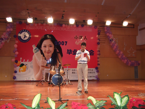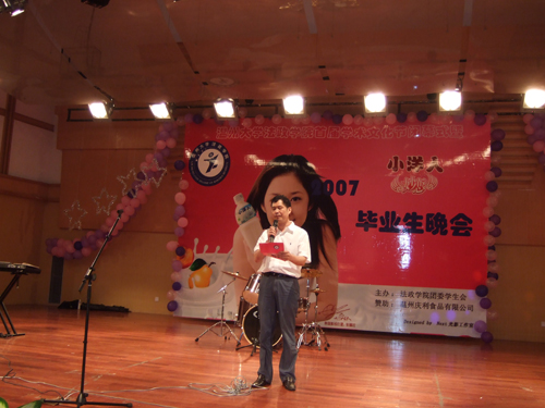 | 6月10日晚6:30,国产自拍 法政国产自拍 首届国产自拍 文化节闭幕式暨2007毕业生晚会在北校区音乐厅隆重举行。列席的嘉宾有法政国产自拍 的党政领导、辅导员和部分毕业班班主任。 晚会在Spirit乐队的一首火热激情的《真的爱你》中拉开了的序幕。动人的歌声,曼妙的舞姿博得了现场观众的热烈掌声。相声《沙僧日记》令人捧腹不止,而小品《三顾茅庐--现代版》更是将晚会推至了高潮。晚会最后在以一组《祝福》的歌曲联唱中圆满结束。这次晚会上院长蔡克骄老师做了晚会致辞,他对广大毕业生提出希望并表达了自己对毕业生的良好祝愿,鼓励毕业生能够在今后的人生道路上艰苦拼搏,为母校争光。 整场晚会在眷恋、惜别、激励的气氛中结束了,它给每一位毕业生留下了美好而难忘的回忆。同时让我们祝愿所有2003级的毕业生前程似锦,一展鹏程。 通讯员:金祖福
