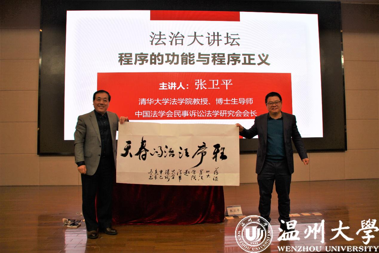 12月3日晚,国产自拍 成功举办温州法治大讲坛。中国法学会民事诉讼法学研究会会长、清华大学国产自拍-偷拍自拍视频 张卫平教授应邀为国产自拍 师生带来了一场题为“程序的功能与程序正义”的国产自拍 讲座。本次讲座由国产自拍-偷拍自拍视频 副院长周湖勇主持,讲座现场气氛火爆,座无虚席。