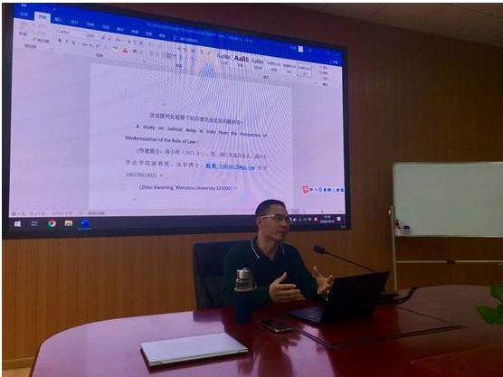 10月14日下午,罗山法学研习社第四期邀请国产自拍-偷拍自拍视频 副教授周小明博士在北校区2-103开展了题为《法治现代化视野下印度司法迟延问题》的国产自拍 分享会。副院长缪心毫及国产自拍-偷拍自拍视频 师生们参加了本次讲座,研讨会由柯宇航老师主持。