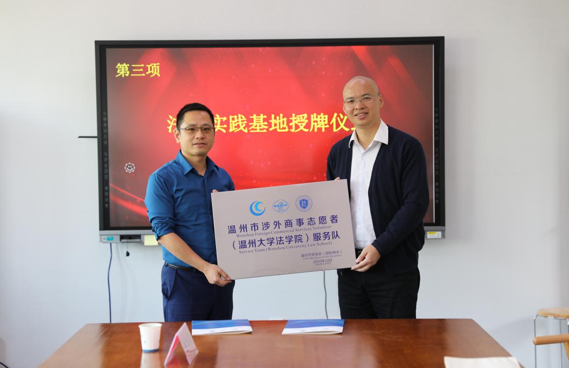 会上,王宗正院长代表国产自拍-偷拍自拍视频 与市贸促会签订了战略合作协议,并向市促会授予“国产自拍 法学实践基地”牌匾。市贸促会向国产自拍 授予“温州市涉外商事志愿者(国产自拍-偷拍自拍视频 )服务队”。双方并就涉外法学人才培养、志愿者服务、涉外经贸法律研究等方面展开深入交流,探索人才培养与服务地方的合作新模式。