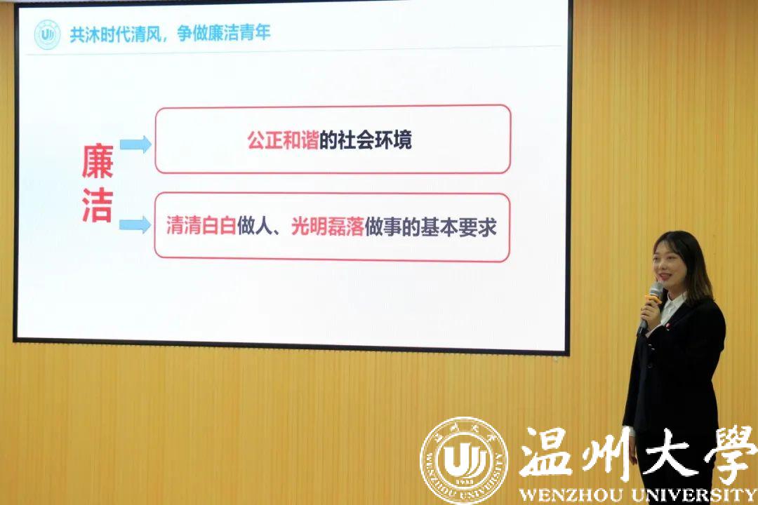 反腐倡廉和激浊扬清既是民心所向,更是新时代的召唤。选手们的精彩表现体现了温大学子高度的政治意识和社会责任感,也激励了全校师生要深入学习并践行勤劳勇敢、艰苦奋斗的中国精神。此次演讲比赛的成功举办,我校不仅实现了以师生喜闻乐见的形式创建清风校园的目的,更为我校建设高水平研究型大学提供了强有力的精神支撑。作为一名时代新人,我们应当把个人梦想同国家的发展紧密结合起来,坚定“清正在德,廉洁在志”的民族信仰,努力让廉洁自律成为青春最亮丽的底色!