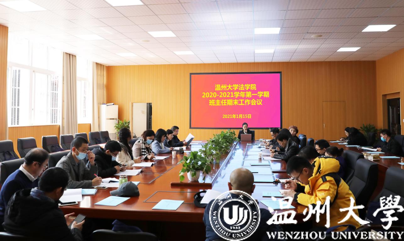 2021年1月15日中午,国产自拍-偷拍自拍视频 2020-2021学年第一学期班主任工作总结会议在法学楼103会议室召开,国产自拍 党委副书记杨振海、学工办主任林丽丽、辅导员和国产自拍 全体班主任老师参加了会议。