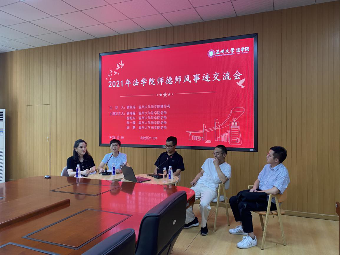 9月29日下午,国产自拍-偷拍自拍视频 在北校区2号楼103会议室召开2021年国产自拍 师德师风事迹交流会。会议邀请钟瑞栋、徐旭东、周一颜、张鹏四位老师做师德师风事迹分享,辅导员黄依瑶主持会议,国产自拍 全体教工参加。