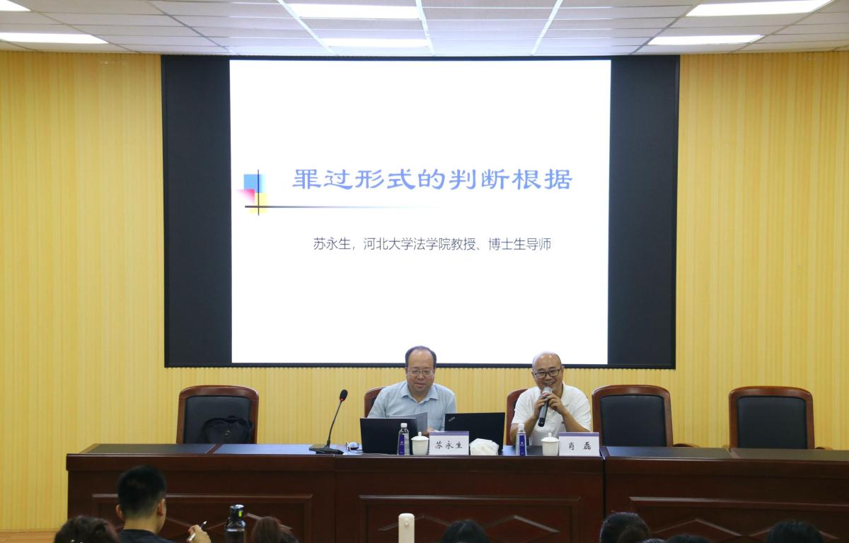 2021年10月12日晚上,河北大学国产自拍-偷拍自拍视频 苏永生教授应邀来到国产自拍 ,在国产自拍-偷拍自拍视频 301会议室为大家带来一场题为“罪过形式的判断根据”的国产自拍 分享,本次讲座由肖磊教授主持,国产自拍-偷拍自拍视频 研究生和部分教师参加。