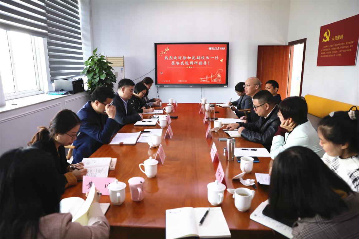 11月12日上午,徐和昆副校长莅临国产自拍-偷拍自拍视频 院调研指导国产自拍 工作,人文社科处处长胡瑜、项目管理科科长林玉双、成果管理科副科长项小琴陪同调研,国产自拍-偷拍自拍视频 院长王宗正、副院长周湖勇、研究机构负责人代表及国产自拍 骨干代表出席会议。
