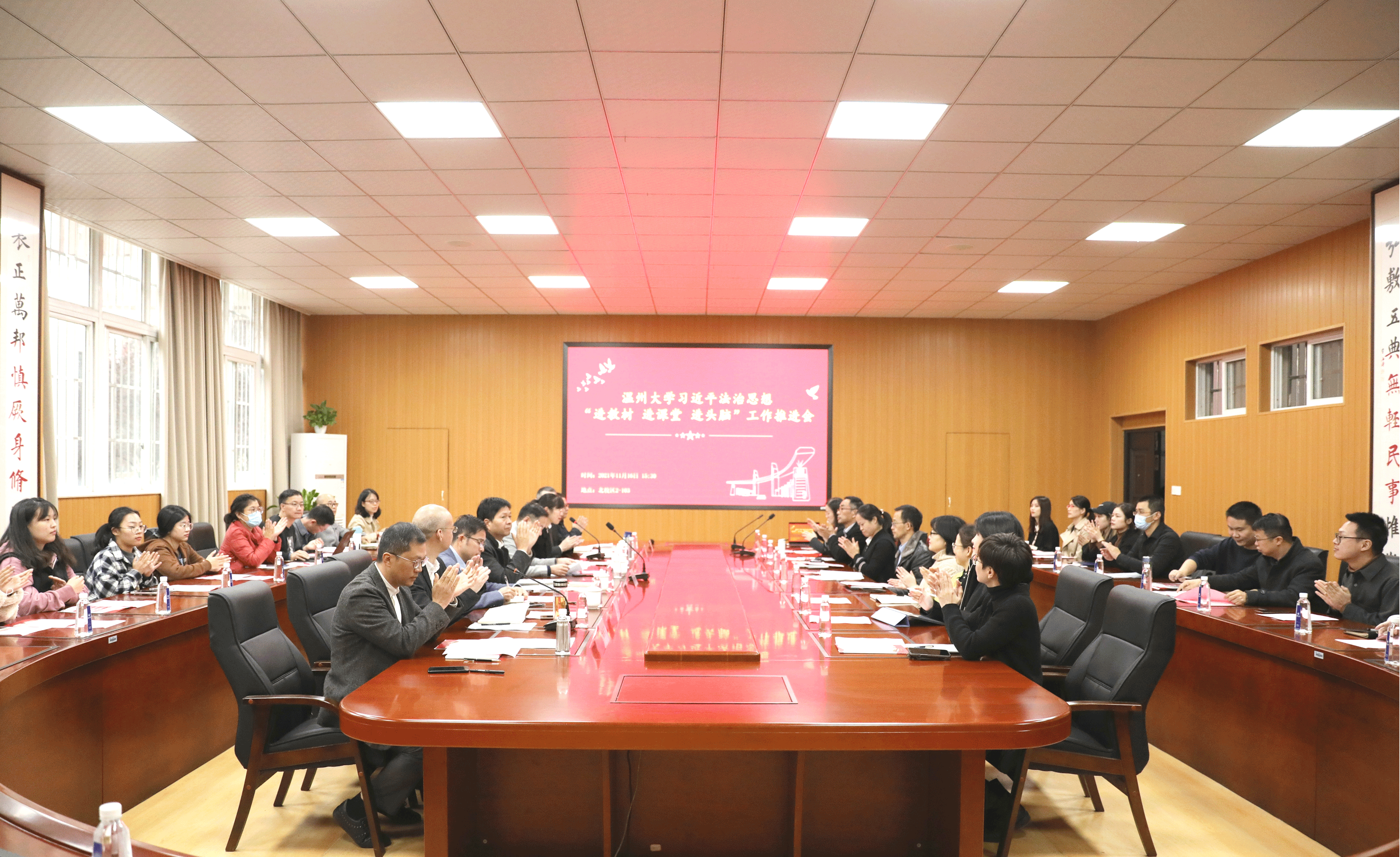 为深入学习贯彻习近平法治思想,全面落实立德树人根本任务,推动法学专业高质量发展,提升法治人才培养水平。11月16日,我校在北校区2号楼103报告厅举行习近平法治思想“进教材、进课堂、进头脑”(以下简称“三进”)工作推进会。校党委副书记庄兴忠,校党委委员、宣传部部长潘玉驹,教务处副处长夏远志,团委副书记易招娣,国产自拍-偷拍自拍视频 领导班子成员出席会议,国产自拍-偷拍自拍视频 各科室负责人、法学全体教师及国产自拍 代表参会。会议由国产自拍-偷拍自拍视频 党委书记林钦主持。