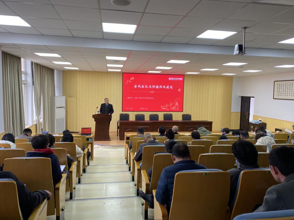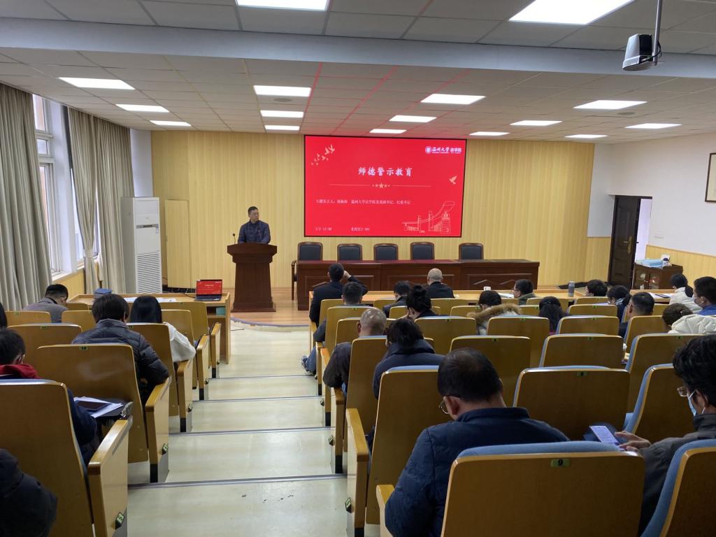 林钦作会风会纪与师德师风专题教育,带领国产自拍 全体教师学习了《国产自拍 教职工考勤与请假管理办法(2017年修订)》《国产自拍 教师职业行为规范及师德失范行为处理办法(试行)》等文件,他强调,良好的师德师风是师者的本分,国产自拍 教师应当以高标准的师德师风要求和约束自己,国产自拍 将始终将师德师风作为第一衡量标准,建设一支具有较高素养的教师队伍。