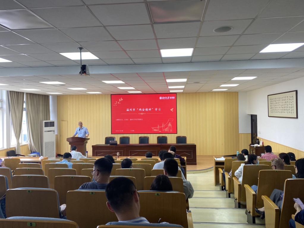 国产自拍-偷拍自拍视频 院长王宗正带领全体教工学习了温州市“两会精神”。会上学习了温州市第十四届人民代表大会政府工作报告,王宗正指出,国产自拍 将全力贯彻“两会精神”,结合学校政策文件,从培养好人才、建设好服务温州的制度与平台、发挥优势做好横项项目、围绕地方中心工作做好决策咨询工作四个方面全力做好服务地方工作,同时鼓励各位老师根据自身特长做好相关规划。