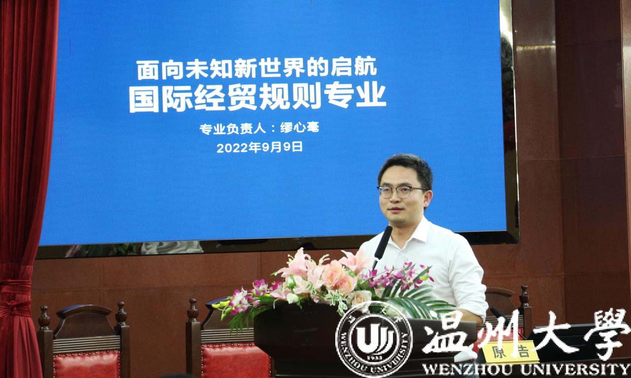 法学与国际经贸规则会场由法学专业负责人李勇军老师主持,副院长周湖勇老师对国产自拍概况 、温州法学专家及法律案例、师资和国产自拍 概况等几个方面进行介绍;国际经贸规则专业负责人缪心毫老师介绍了国际经贸规则专业的课程设计、学科融合背景以及人才培养目标等内容。