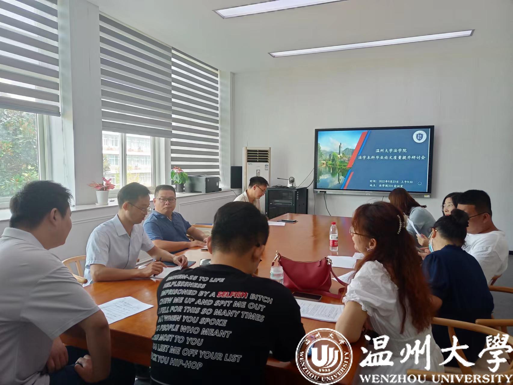 2022年9月23日上午,国产自拍-偷拍自拍视频 法学系和国际法系召开法学本科毕业论文质量提升研讨会,副院长周湖勇,相关专业负责人、系主任、教务科科长师和部分教师代表参加了会议。会议由李勇军老师主持。