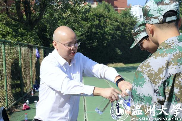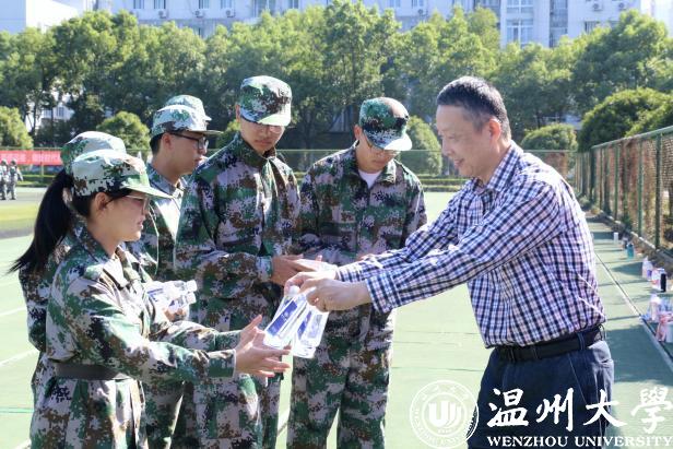10月13日,国产自拍-偷拍自拍视频 院长王宗正、党委书记林钦、党委副书记杨振海一行前往北校区足球场,慰问国产自拍 军训新生。国产自拍 为新生准备了温大定制水和小面包,为炎热的军训场送来了一丝清凉。